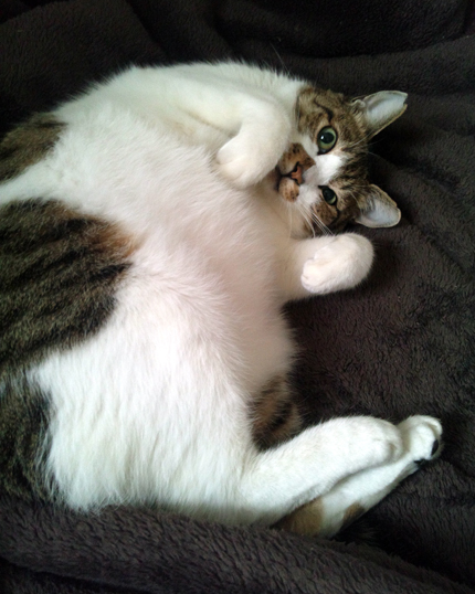 すっかりイエネコの風格も身につき、ついでに頬肉もまんべんなく身につけたあげくのムッチリ体型。