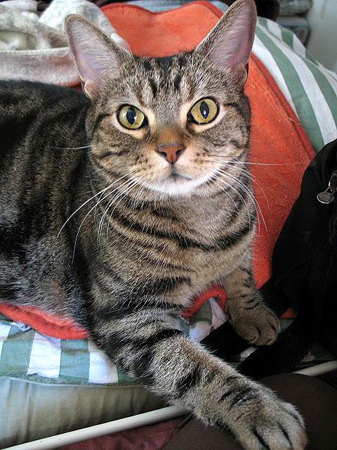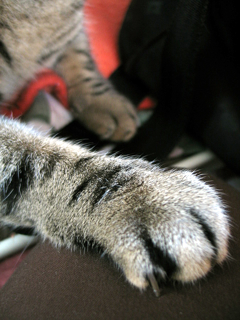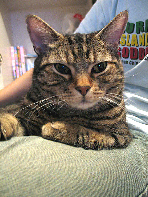前足をちょいとお母ちゃんのヒザに乗せる仕草が可愛い♪