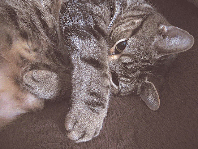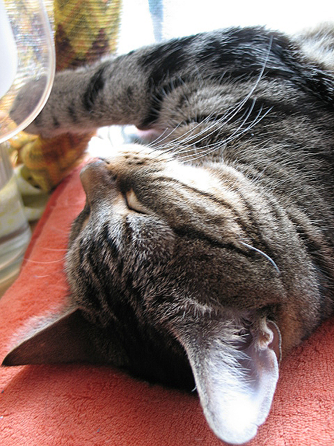 なんか、猫の寝顔って見ているだけでこっちがニヤニヤしてくる♪癒し効果は抜群だ。