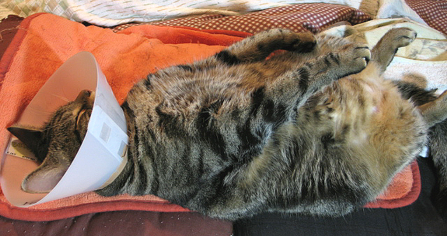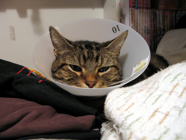 エリザベスをつけていると少しは大人しいのだが、お腹の中でふくらむタイプのダイエット食を本気で考えねば。
