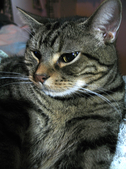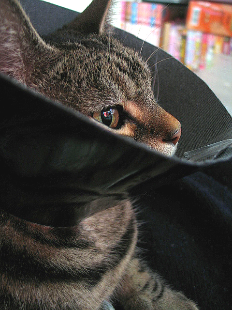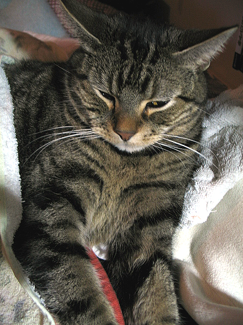抜糸がちょっと痛かったらしい。涙目のゆきちゃんだけど、「燻し銀の男」は泣いちゃいかん。(´・ω・`)