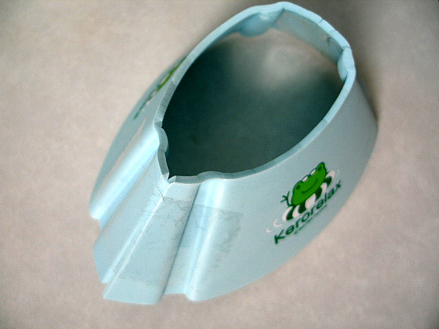 マジックテープとかつけると合わせ目に厚みがでて傷にひっかかるので、とりあえず裁ちっぱなしで粘着テープで留めてあります。
