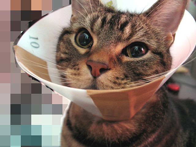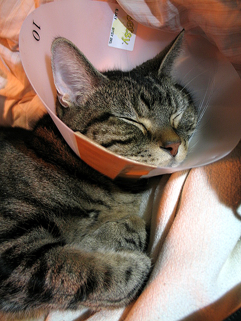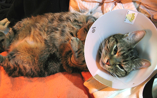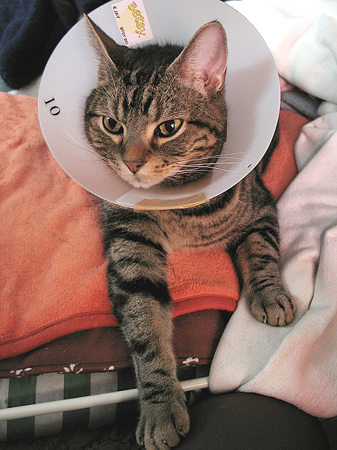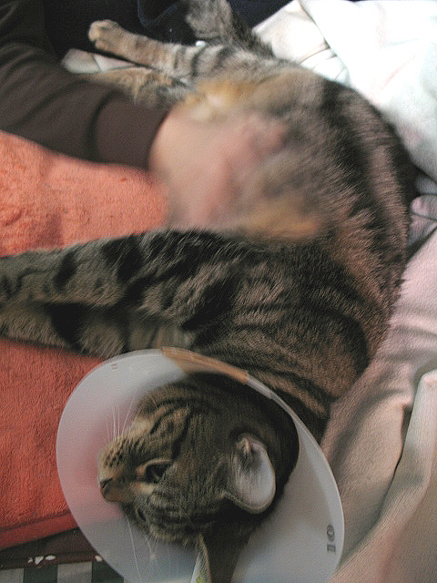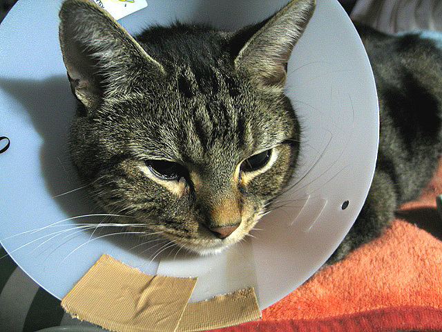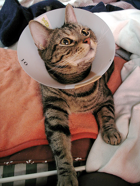 切開した傷の具合はまずまず順調で腫れもなく、ごはんの時だけカラーを外していいとお許しが出た。