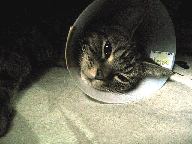 でも今回はアゴの下を3針縫っているのでしばらくは我慢してもらうしかあありません。