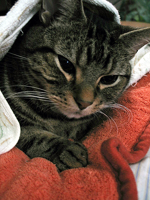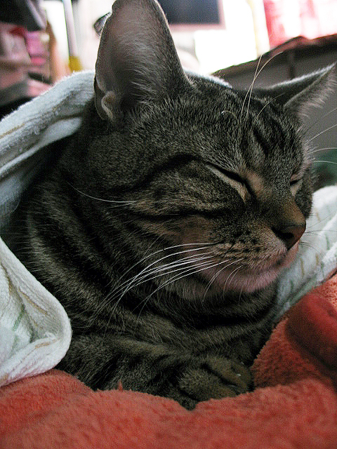 おかあちゃんはいま、秋のアレルギー発作でお薬飲んでおとなしくしてるニャ。