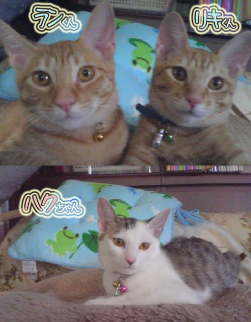 ランくん、リキくん、ハクちゃんです。