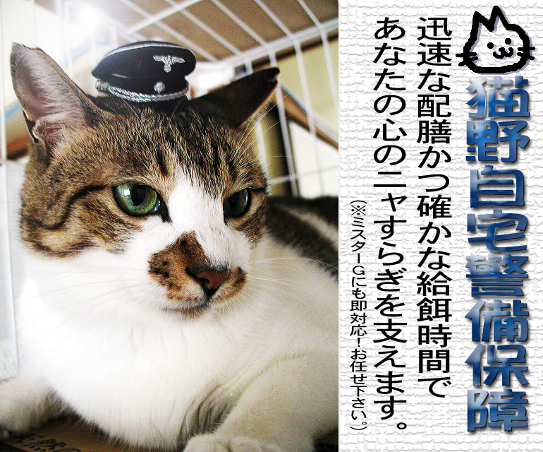 24時間、休みなくあなたのご自宅を守り抜く「猫野自宅警備保障」をどうぞよろしくお願い致します。