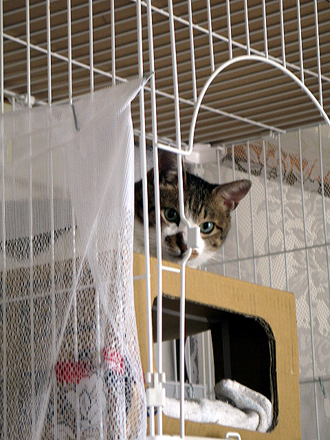 ケージから降りてきてくれるといいんだけど。