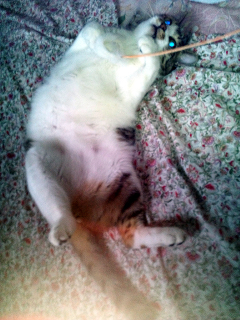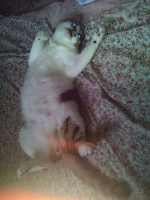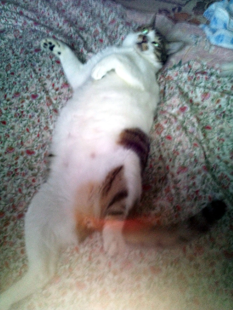 なにげに見るとお布団の上でまどろむジュリー社長のお姿が。